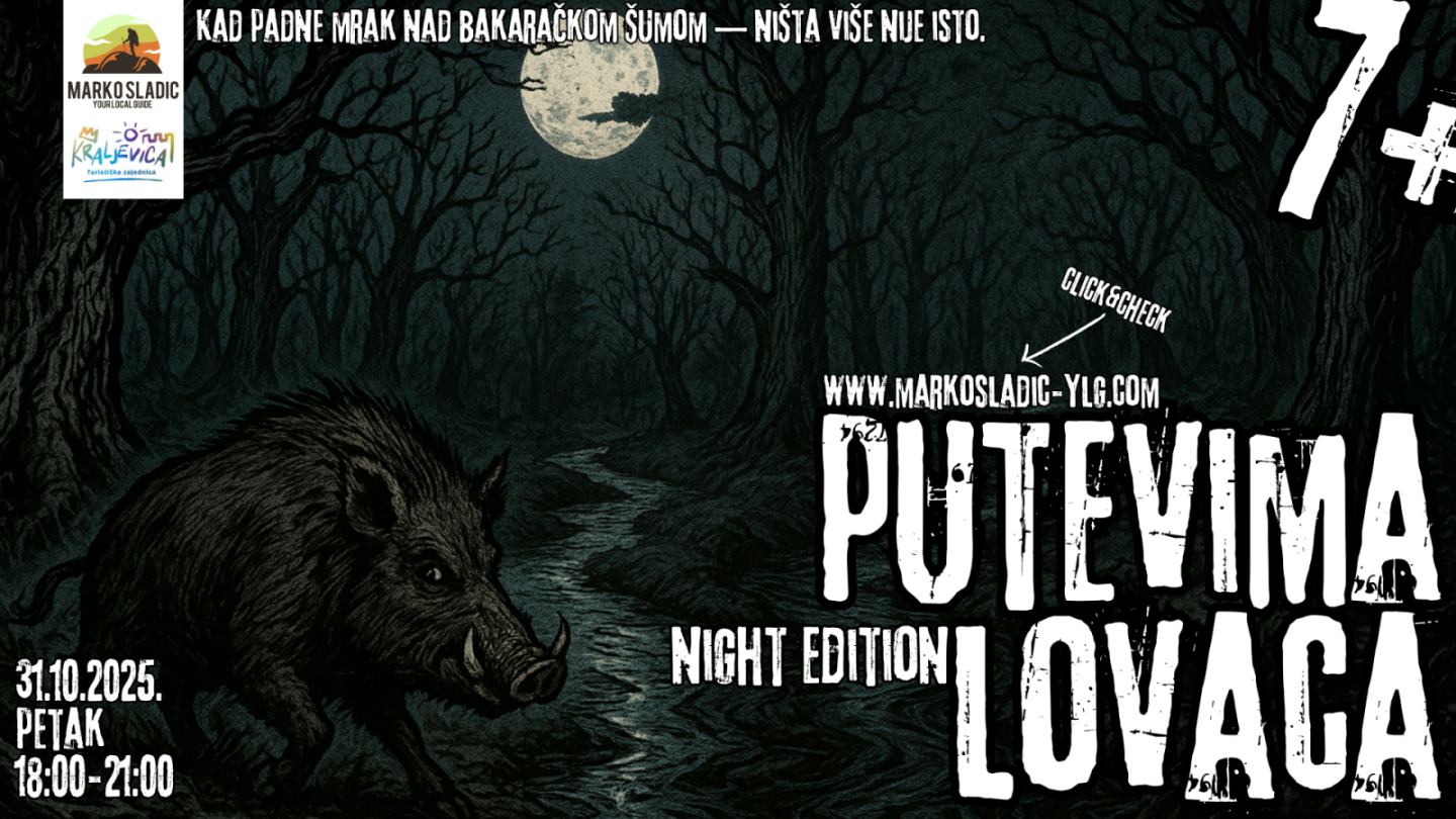 We invite all the brave and curious to join us for a nighttime adventure called “Putevima lovaca – Night Edition”! This special evening walk is designed as a fun yet mystical experience for children aged seven and up, as well as for adults seeking a different kind of encounter with nature.
